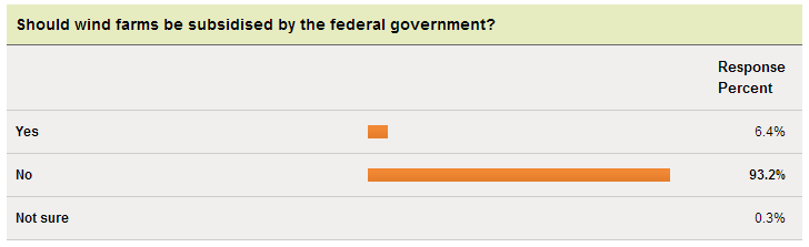 Here’s a little survey that was put up by the Mudgee Guardian that asks the correct question: viz, Should wind farms be subsidised by the federal government?