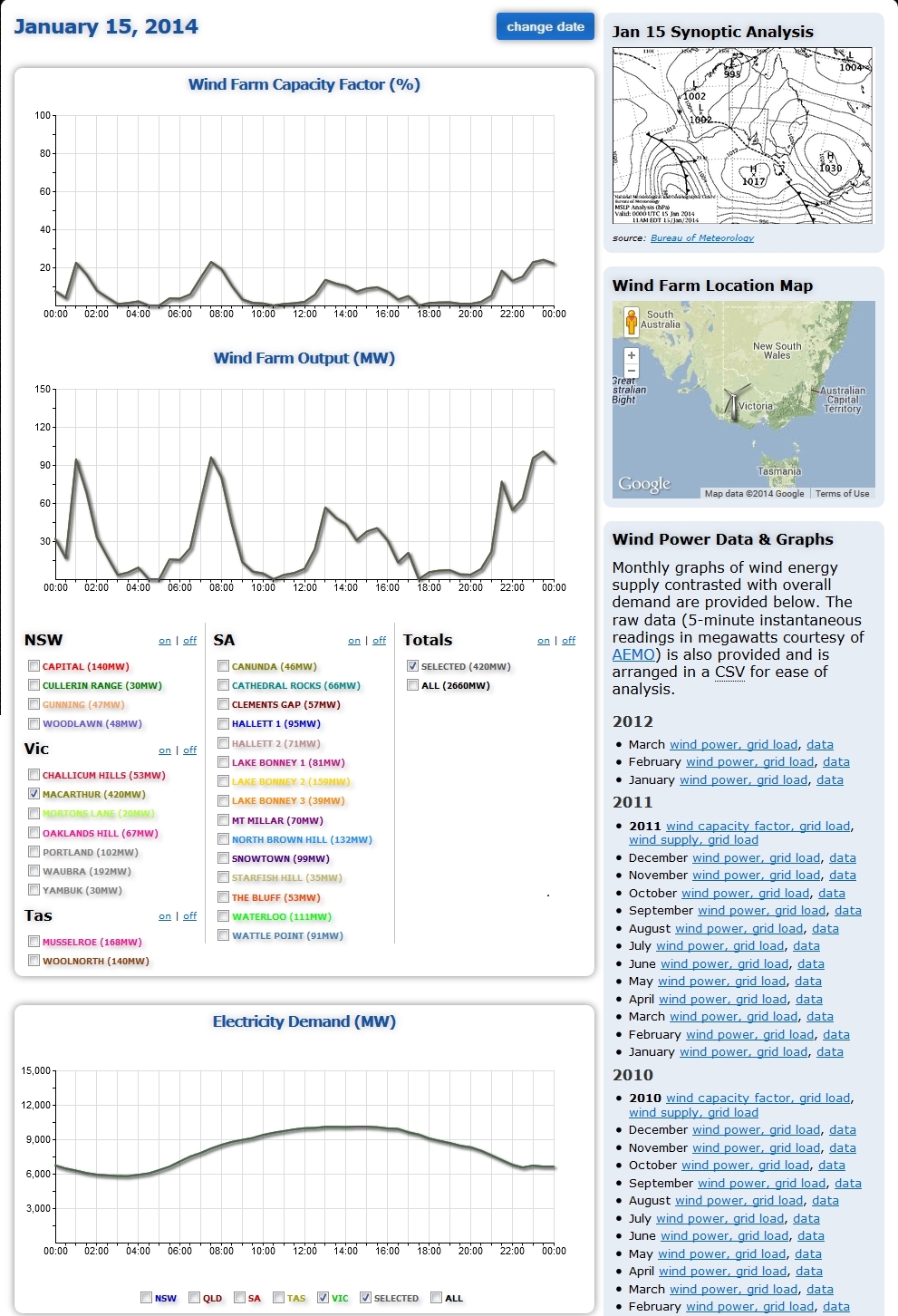 First, let’s have a look at AGL’s 420 MW Macarthur outfit.  Oh, and if the graphs look a little fuzzy on your screen, click on them and they will pop up in a new window, clear as crystal.