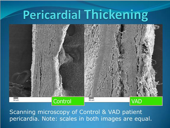 The autopsy findings of thickened cardiac structures led to the echocardiographic study of the population of aircraft technicians.  All had thickened pericardia, and many also exhibited thickened cardiac valves (Marciniak et al. 1999).  Pericardial thickening among LFN-exposed individuals has been anatomically confirmed through light and electron microscopy studies of VAD patient pericardial fragments (collected with patients’ informed consent, during cardiac bypass surgery received for other reasons) (Castelo-Branco et al. 1999a, 2001, 2003a,b; Castelo-Branco 2004).
