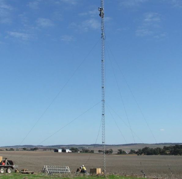 This wind monitoring mast for the proposed Robertstown wind farm was taken down today by contractors under direction from Energy Australia. It was erected in 2009, a mere 500 m from a neighbouring farm house and close to the township of Point Pass and dozens of hobby farms and lifestyle blocks.