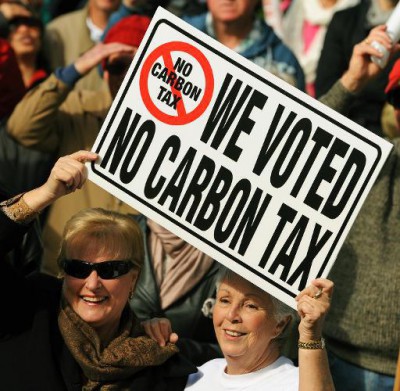 This as the saying goes really is a double whammy, Australian PM Tony Abbott is a politician who has actually kept his word and dumped the hugely unsuccessful and deeply unpopular Carbon Tax, that Labor PM Julia Gillard promised voters she would never introduce, and then promptly broke her word.