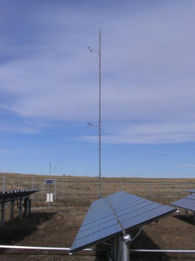 Those METs — or meteorological evaluation towers — are thin and metal; they kind of blend in from the air. Farmers lease some of their land to wind energy companies that use them to gather data.