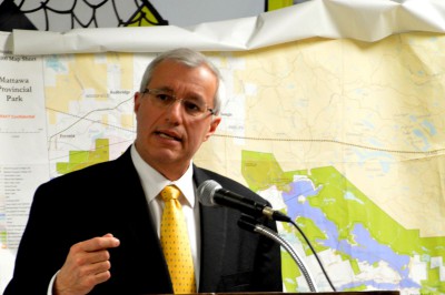 Nipissing MPP Vic Fedeli was one of 12 representatives opposing the proposed Mattawa-area wind farm who spoke to a standing-room only audience at Mike Rodden Arena on Friday night.
