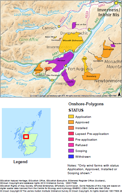 Loch Ness is under threat from over 500 wind turbines approved and in the planning stage within a 22 mile radius (Daily Mail 28/1/2015). Loch Ness and the Great Glen are now prime targets for windfarm developers. There are calls to classify Loch Ness and the Great Glen a World Heritage Site because of their international importance. They are Scotland’s second most popular tourist draw. Yet, environmental destruction could threaten some of the Highland’s most scenic areas.