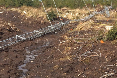 This giant 250ft mast was found cut down today on the site of Ireland’s biggest wind farm.