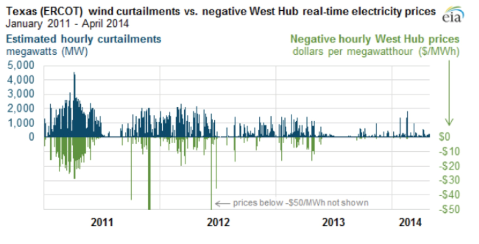 The ERCOT region was plagued by negative pricing concerns until the CREZ transmission improvements reduced such instances.