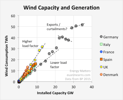 This of course is also higher cost wind, but this is a story for another day. Another part of the explanation lies in the higher deployment of solar PV in Germany that has a lower load factor than wind. Whatever happened to that German obsession with efficiency?