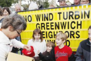 In the summer of 2014, many residents of Greenwich began to understand the real significance of the proposed wind farm development that would be erected in our backyard. The developer had filed an application for a certificate with the OPSB and was seeking authorization to install 25 wind turbines, each 490.5 feet tall with rotor diameters of up to 383 feet, and covering 4,650 acres of land.