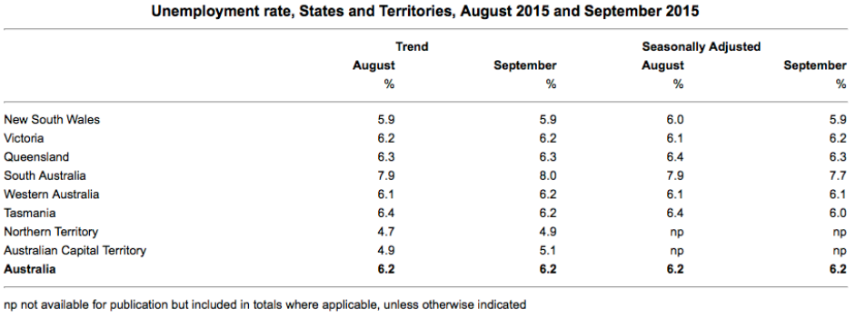 National unemployment figures remained at 6.2 per cent (seasonally adjusted).