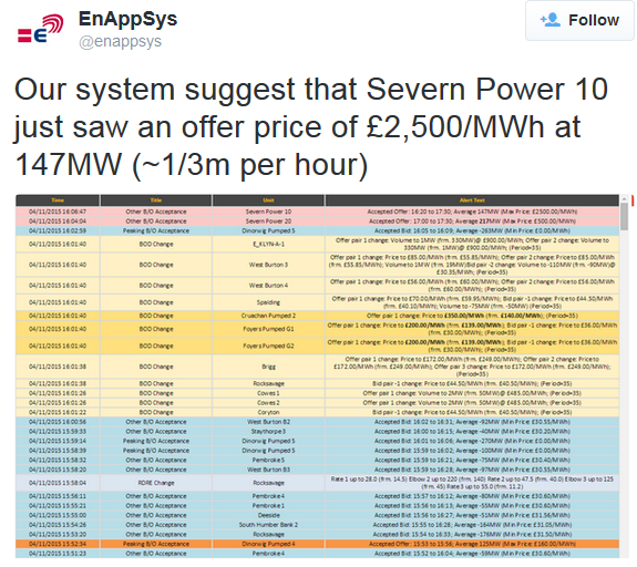 National Grid later announced that it had also had to use a scheme called “demand side balancing reserve” (DSBR) to reduce demand on the Grid by about 40 MW.