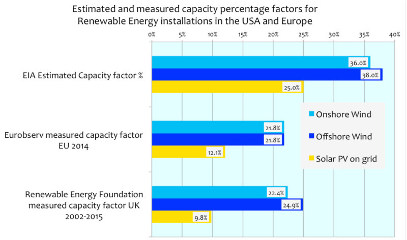So it can be seen that Renewable Energy performance throughout Europe is very substantially less that the published levels of achievement stated by the US EIA.