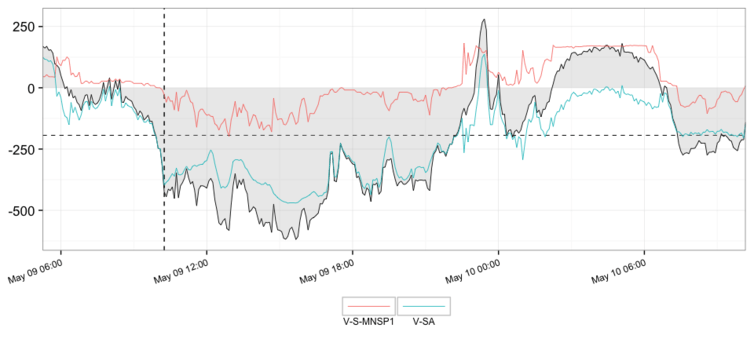 The electricity market followed suit, with spot prices rising to $400 per megawatt hour as Northern’s last turbine was shut down, to $480 shortly after, before descending as low as -$34 the following morning.