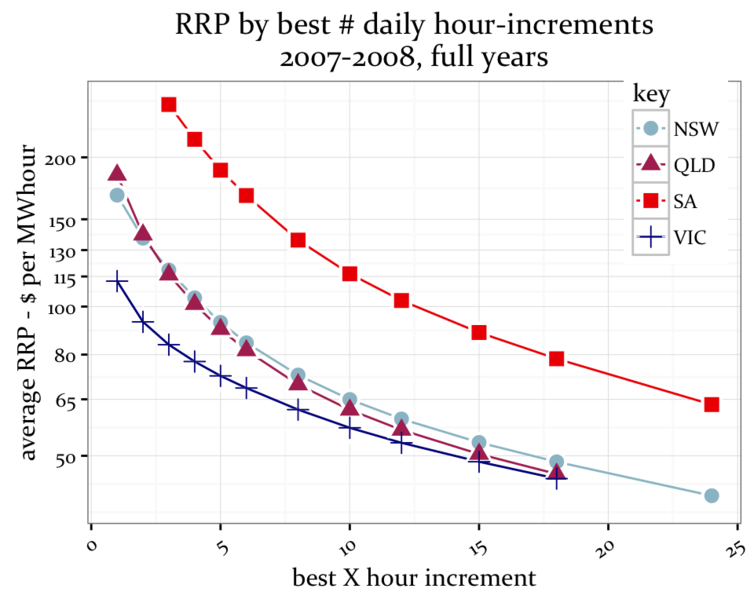 Any possibility of a return to 2007-08 pricing regimes following Northern’s closure would no doubt excite interest in new investment, especially in grid-scale storage. If one believed those prices would be sustained over the long haul, then solar thermal power configured with about five hours molten salt storage, such as being proposed by Solar Reserve, would be an attractive offering. Of course, that would very much depend on how gas prices play out in the future, whether one believes there will be a carbon price, what happens to the RET beyond 2030, and just how much other investment is being considered.