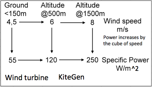 As explained in my earlier post, high altitude wind has potential to multiply the ERoEI of ground based wind turbines. The argument here is rather complex and will be explained in greater detail in a separate post. Suffice to say that the mass of the KiteGen, and hence energy embedded in the materials, is a fraction of that in a large turbine. This is specific to the design concept.