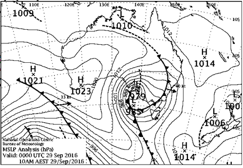 The following day, 29 September 2016 saw a repeat performance: winds maintained gale force across the state due to an intense low centered over Adelaide: