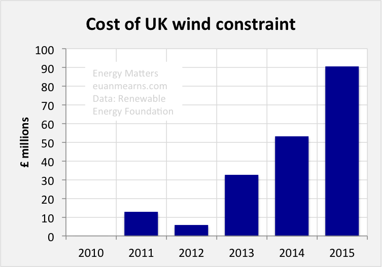 The piece is on the eye-watering sums of money paid by way of constraints and money paid for not generating the electricity at times of constraint and includes the excellent article from Euan Mearns which, as Alan Sloman said, ‘This may look long & technical, but it’s written so everyone can understand it.
