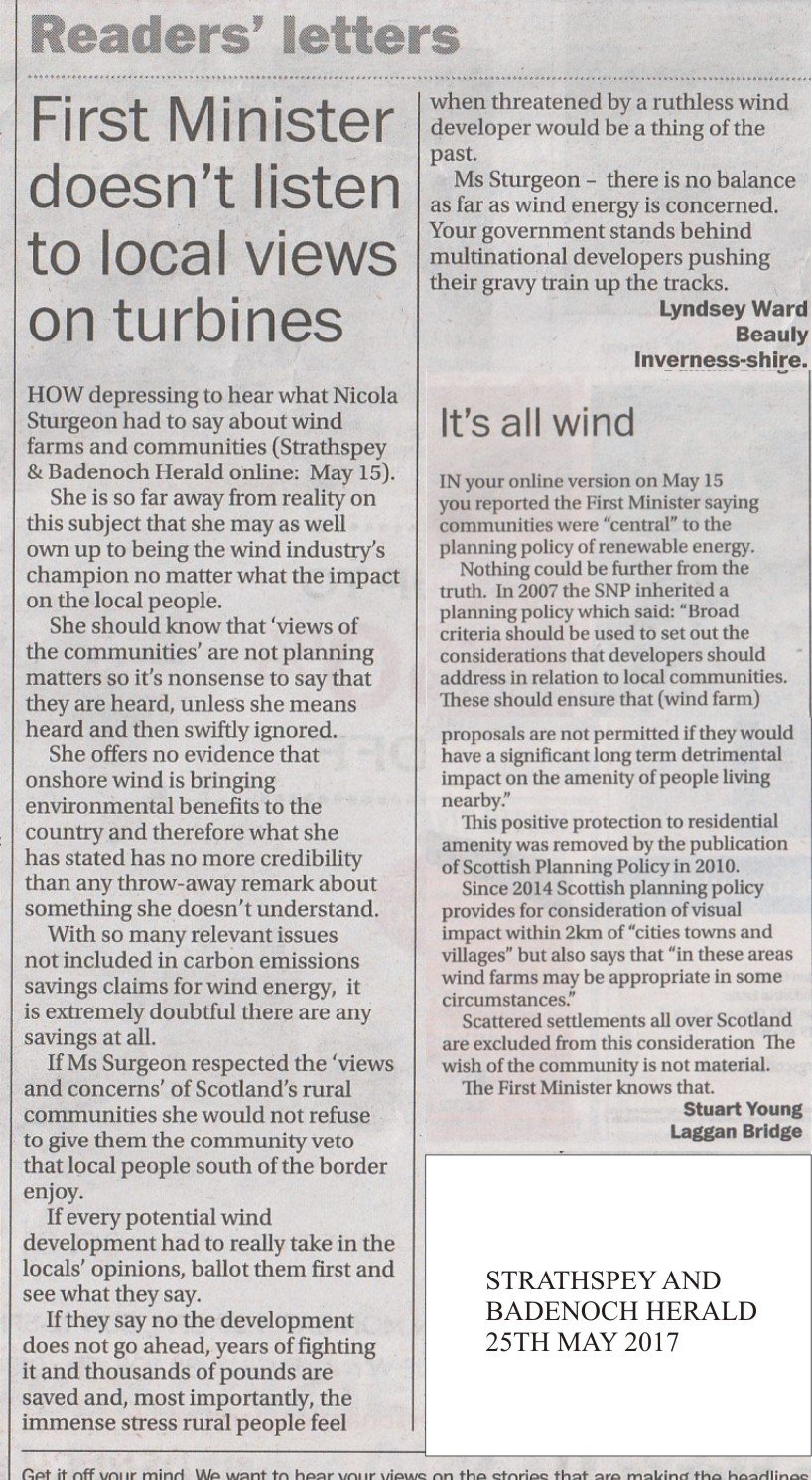 Finally, we must add our voice to that of STT who have given Lyndsey total credit, fully deserved, for her – as they put it – ‘cracking letter’, summing up the situation. It is – she has been and remains an indefatigable campaigner whose grasp of wind on so many fronts and her ability to put into simple language is outstanding. Don’t blush, Lyndsey – it’s the truth.