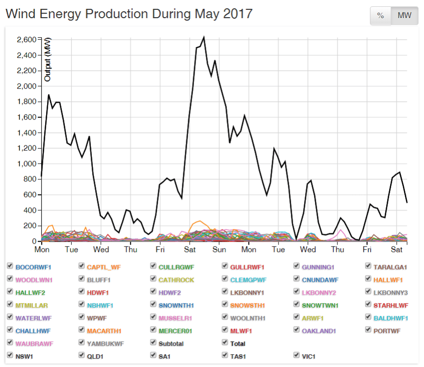 The AEMO must surely realise when turbines break down ie gearbox or blade they are out of action for months, sometimes years. Wind farms have 3, 6 and 12 mths maintenance schedules and if not kept up, productivity of the turbines drops. Productivity of a turbine is of no interest or concern to me, but gunk builds up on blades, inside components have to be kept clean and well oiled else breakdowns, possibly accidents and noise and vibrational impacts increase.