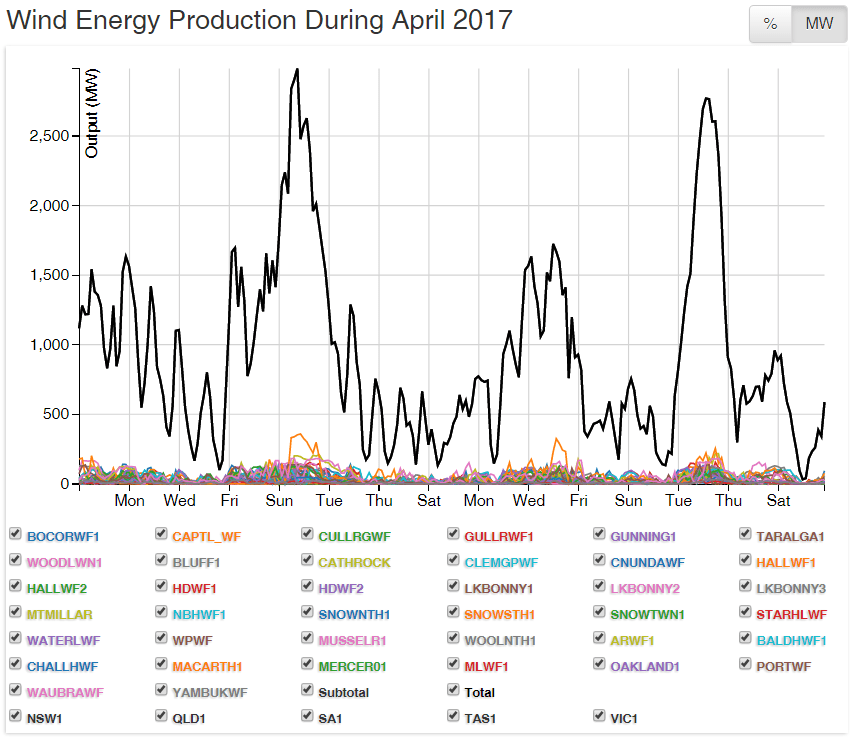 Here’s the output of every wind turbine connected to Australia’s Eastern Grid, thanks to the boys over at Aneroid Energy, for the final quarter of FY2016/17 – the one that dashed Infigen’s hopes of raking in even more Renewable Energy Certificates.