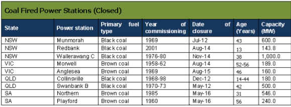 Figure 10 Closed coal-fired power stations in Australia [ref 2].