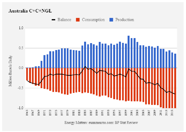 Figure 13 Australian oil production, consumption and balance from Global Energy Graphed.