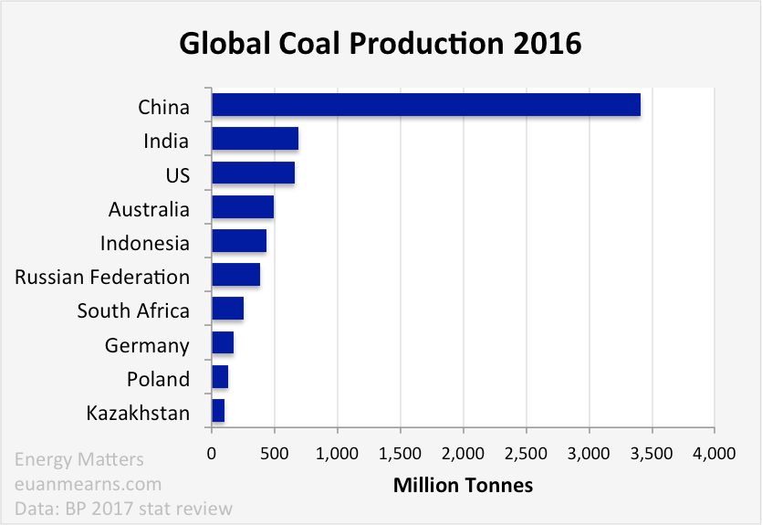 The parliamentary library paper showed that 321 gigawatts of new generation would come from coal plants under construction globally. In 2015 and 2016, total coal generation retired amounted to 64 gigawatts.