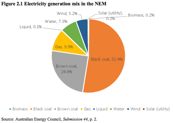 Figure 8 The NEM = The National Electricity Market that is the connected grid of Eastern Australia. Fossil fuel accounts for 87% of generation [ref 2]. Year unknown.