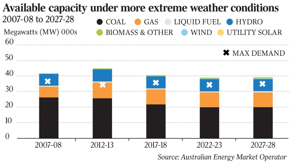 Renewable industry supporters have distorted the AEMO findings to argue the big risk is that climate change and hotter weather will make existing fossil fuel plants less reliable.
