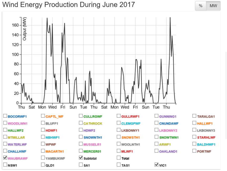 What appears above and below is taken from the Aneroid Energy website and captures the entire output of every wind turbine connected to Australia’s Eastern Grid during June this year.