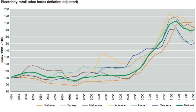 The upshot of AGL increased income at the expense of the nation as a whole is the clear derivative of years of subsidies to accelerate the onset of the ever receding future of low cost renewable energy. It stems from government policies, and the Turnbull government is only maintaining a policy set by John Howard, 17 years ago (a policy Howard now says he deeply regrets). The policy was not curtailed by Abbott, who with Australia’s accession to the 2015 Paris Agreement set the stage for its continuations but now appears to be saying he’d terminate all subsidies forthwith. That approach is also favoured by the Lib Dems, One Nation, and the Australian Conservatives, (but not Bob Katter who’ll take any subsidy he can get).