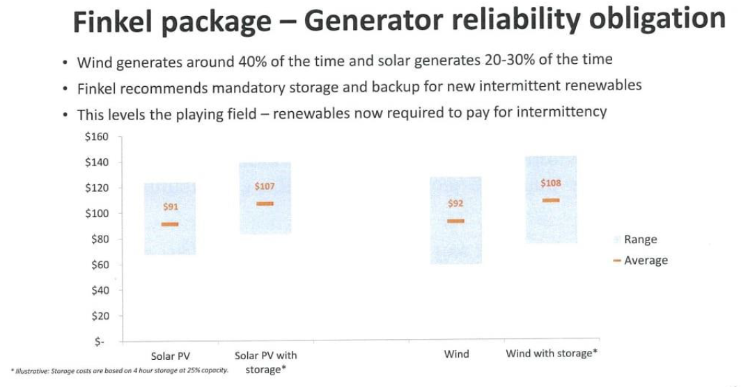 Minister Frydenberg recognised this when in June of last year he argued that wind should pay an extra $16 per MWh to firm up its intermittency costs. This, though it is hopelessly inadequate, is likely to be a provision in the National Energy Guarantee (NEG).