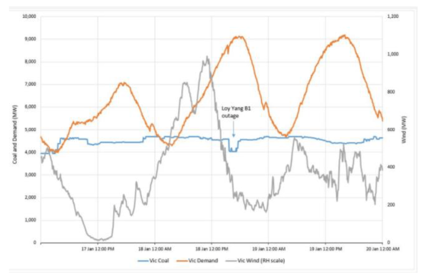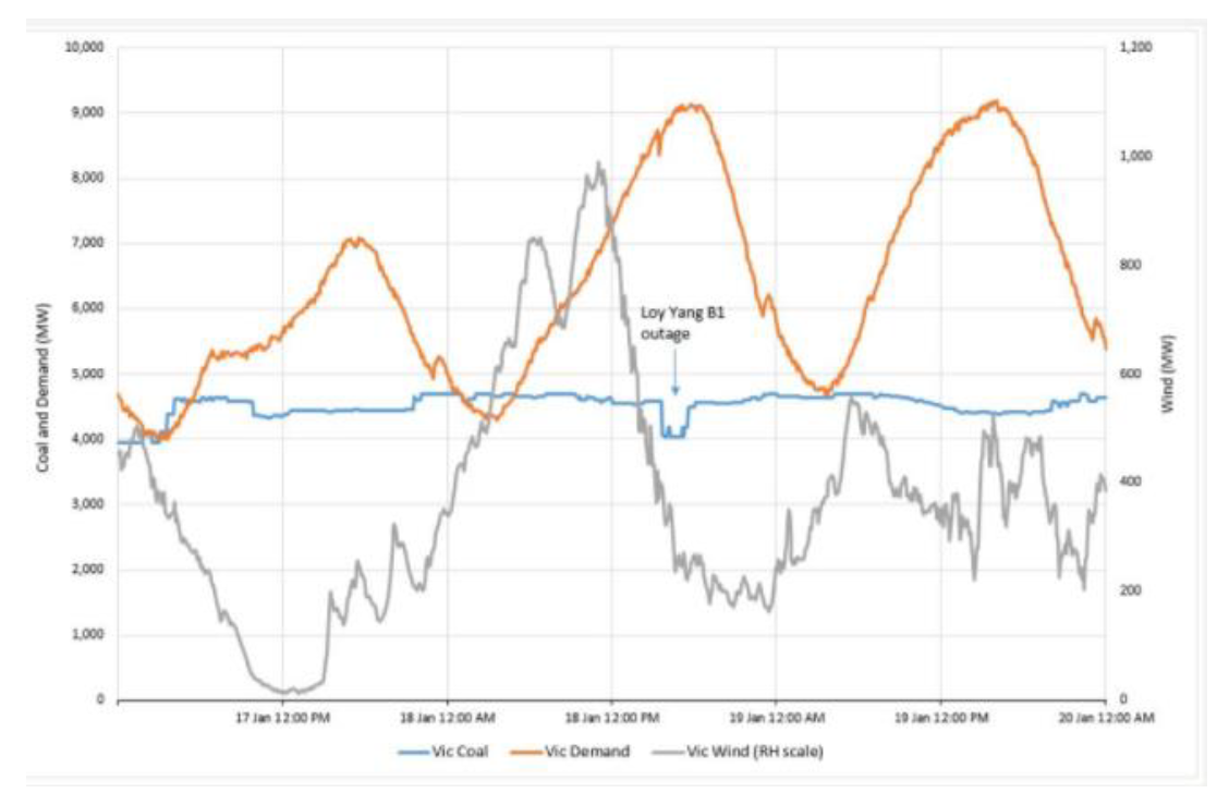 Much was made of a sudden loss of a unit of Loy Yang B (528 MW) for two hours on 18 January this year as causing a price spike. Such outages are common but this is also the case wind, which fell 800 MW in a similar period.