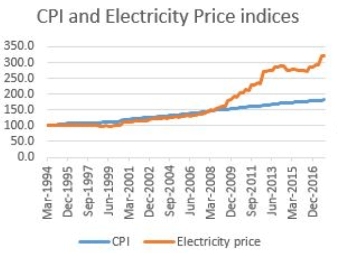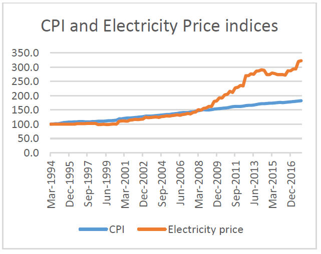 Here we have the breakout in electricity prices as the influence of government increased.