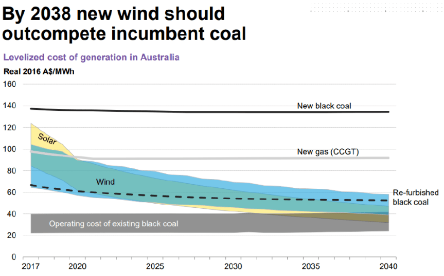 Work by Jacobs for the Climate Council in 2014 suggested new coal in Queensland was under $60 LRMC while work commissioned by the Minerals Council put the cost of new coal in Queensland at under $50 per MWh.