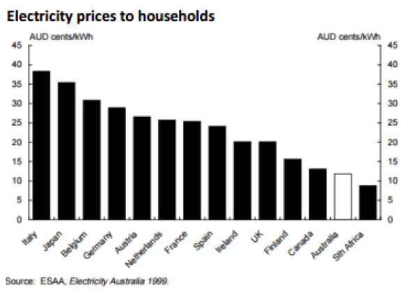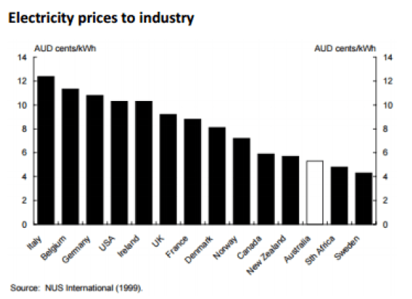 The upshot of the subsidies in Australia has been a disastrous deterioration in our relative competitiveness in power prices from this in 1999: