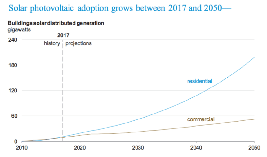 According to the EIA, AEO 2018, “Social influences will contribute to the continued adoption of residential photovoltaic (PV).”