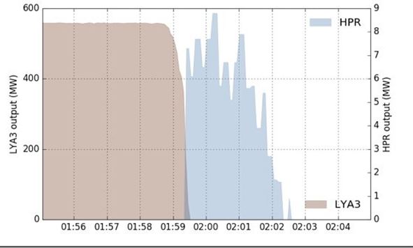 Looks impressive, but a closer glance at the scaling of the chart shows that the maximum injection of power from HPR was less than one sixtieth of what was lost when Loy Yang A3 tripped. If we use a common scale for both facilities then the picture is a little different: