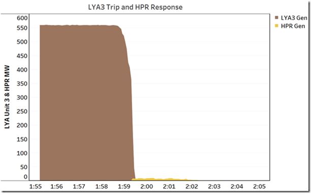But to see all this in better context, the point of this post is to show what the system as a whole does when a large generating unit trips, covering the response of a broad set of generators.