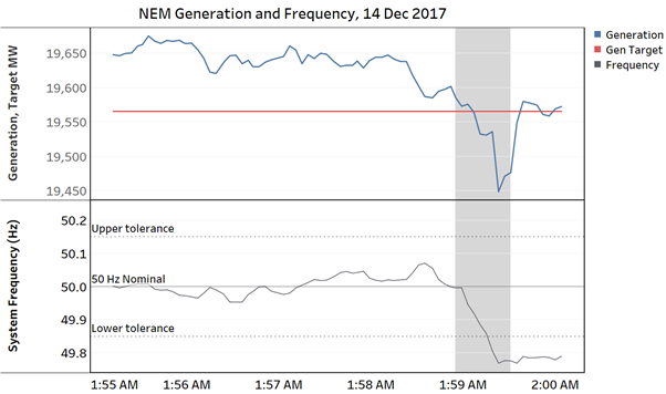 A quirk of the FCAS markets means that AEMO publishes operational data from its Energy Management System which captures SCADA data every four seconds on generator outputs, system frequency, and other arcana. For very good reasons commercial electricity market viewer / analysis products don’t deal with this level of detail, but it’s the best available public source to understand what happens in response to a large unit trip. It’s this sub-5 minute world that FCAS is concerned with. I’m not sure if market operators anywhere else in the world routinely publish data at this level of operational detail, but I’d be surprised if many do.