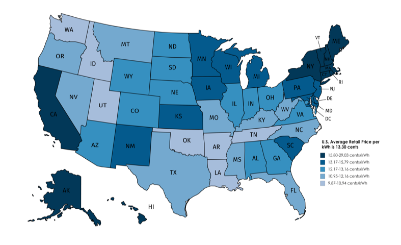 Table 1 lists states with the highest cost of electricity, other than Alaska and Hawaii which are unique due to their geographic locations.