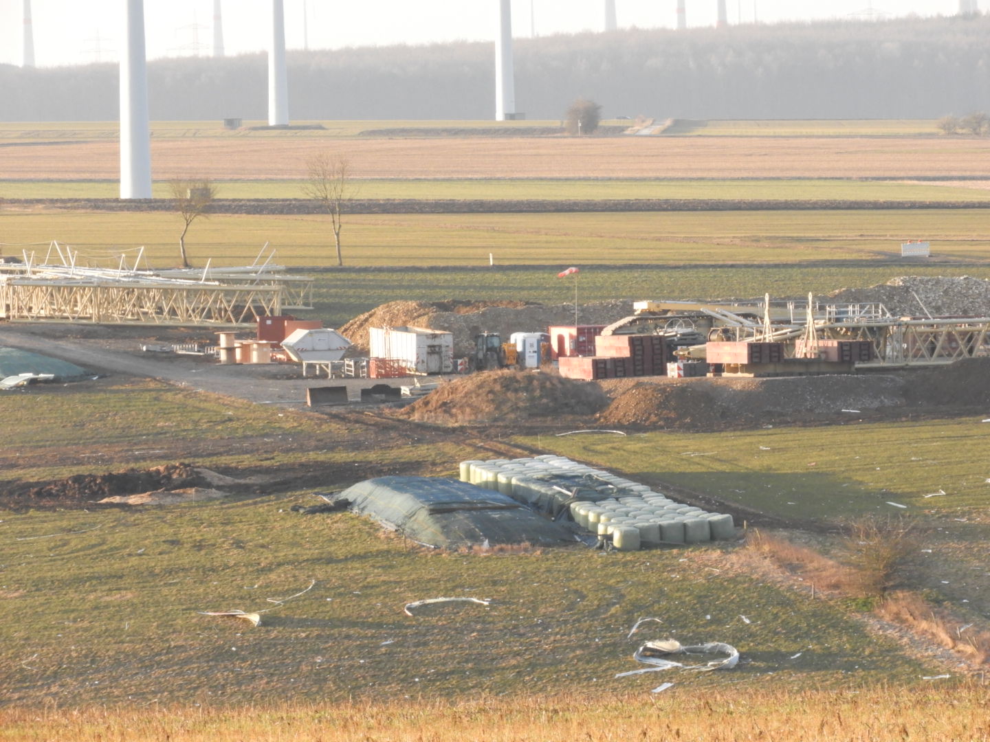 The shredded windmill sits between Dörenhagen and Etteln in the borough Borchen in the southern circle Paderborn. Just a few meters away, another 6 wind turbines of the same type are currently being built. The turbines are only being built because the CDU and the Greens in the Borchen town council overrode a decision taken by the municipality against these wind turbines last year.
