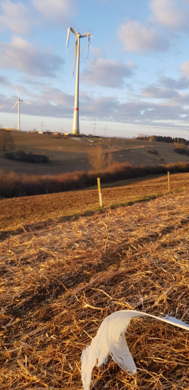 In the late afternoon/early evening of March 8, 2018, two 56 meter blades of a brand-new ENERCON E-115 wind turbine were completely ripped apart – parts flew more than 800m. This is the third heavy windmill incident in Keis Paderborn in the last 2 years.