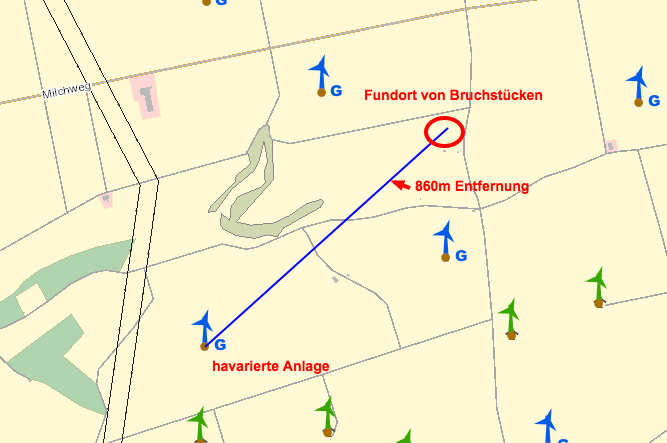 Neither owner ENERCON nor builder WestfalenWind notified either the public or the police after the incident, even though there was serious danger to life caused by blade shards and flying fragments.