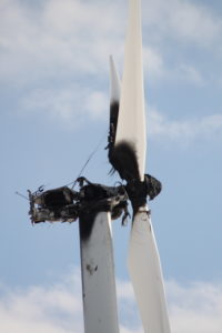 University of Maine’s Presque Isle turbine engulfed in flames.