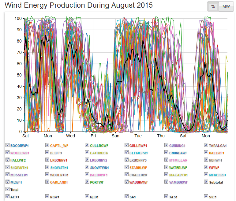 Australian wind patterns mean our entire wind generation across millions of square kilometers crawls to a near standstill roughly every ten days. What are the odds that extra wind turbines will change the prevailing wind patterns?