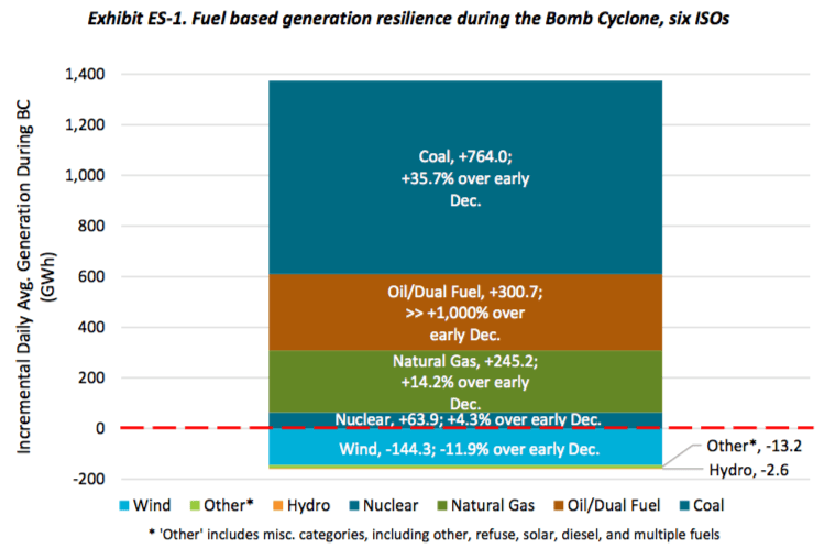Wind output was down 12% from December’s output, during the period of the storm, as shown in this DOE chart. (Light blue area)