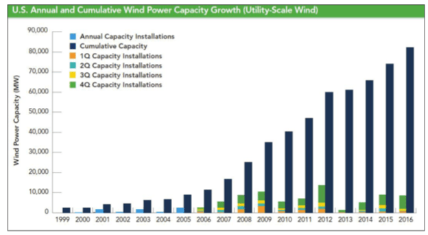 The American Wind Energy Association (AWEA) is constantly bragging about increases in installed wind capacity.