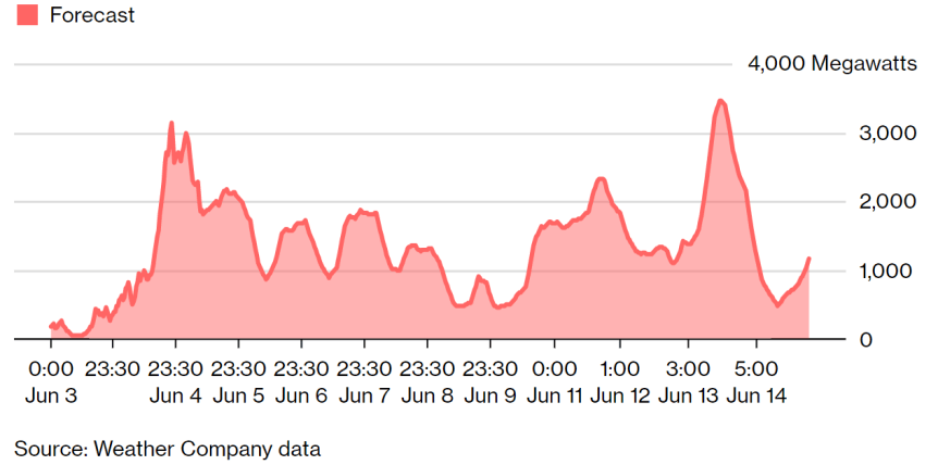 Low wind power isn’t a threat to supplies in June when demand is low, but on a dull, dark day in winter, this could be a different story.