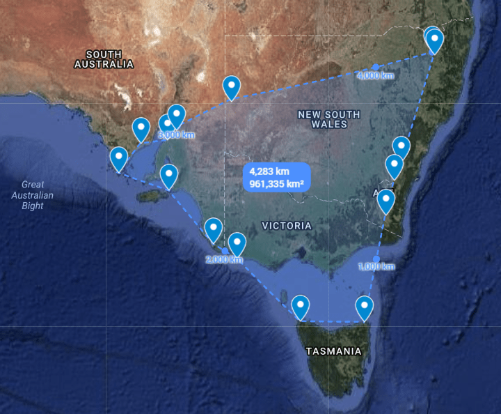 There are over 1,800 turbines in 80 odd wind farms (which range from 20-30 turbine clusters right up to the largest collection of 140 at Macarthur in Western Victoria) – that are spread out over a geographical expanse of 961,335 km².