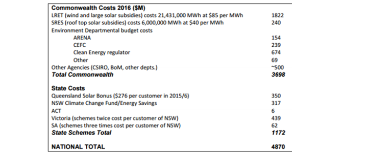 - drastically prune the bureaucracy, including abolition of the Energy Security Board, pare the proven inefficient Canberra bureaucracy, abolish energy economic forecasting bodies in the CSIRO, defund the CO2 CRC (“helping industry to reduce greenhouse gas emissions”), and various other agencies involved in carbon capture and storage (funding of at least $200 million in the pipeline); all of these, like the renewable subsidies have amounted to negative value-adding expenditures.